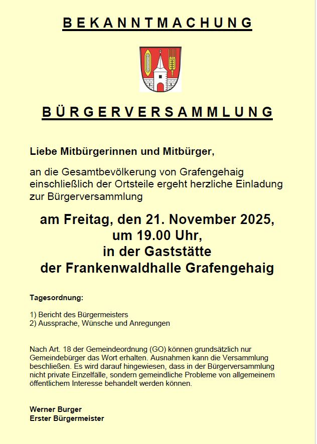 an die Gesamtbevölkerung von Grafengehaig einschließlich der Ortsteile