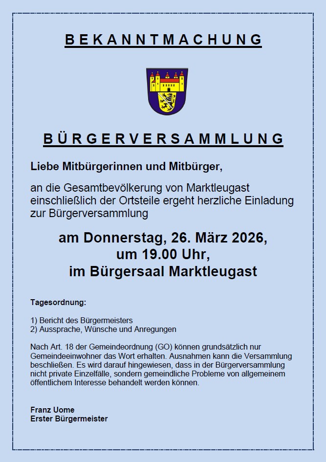 Bekanntmachung der Bürgerversammlung des Marktes Marktleugast